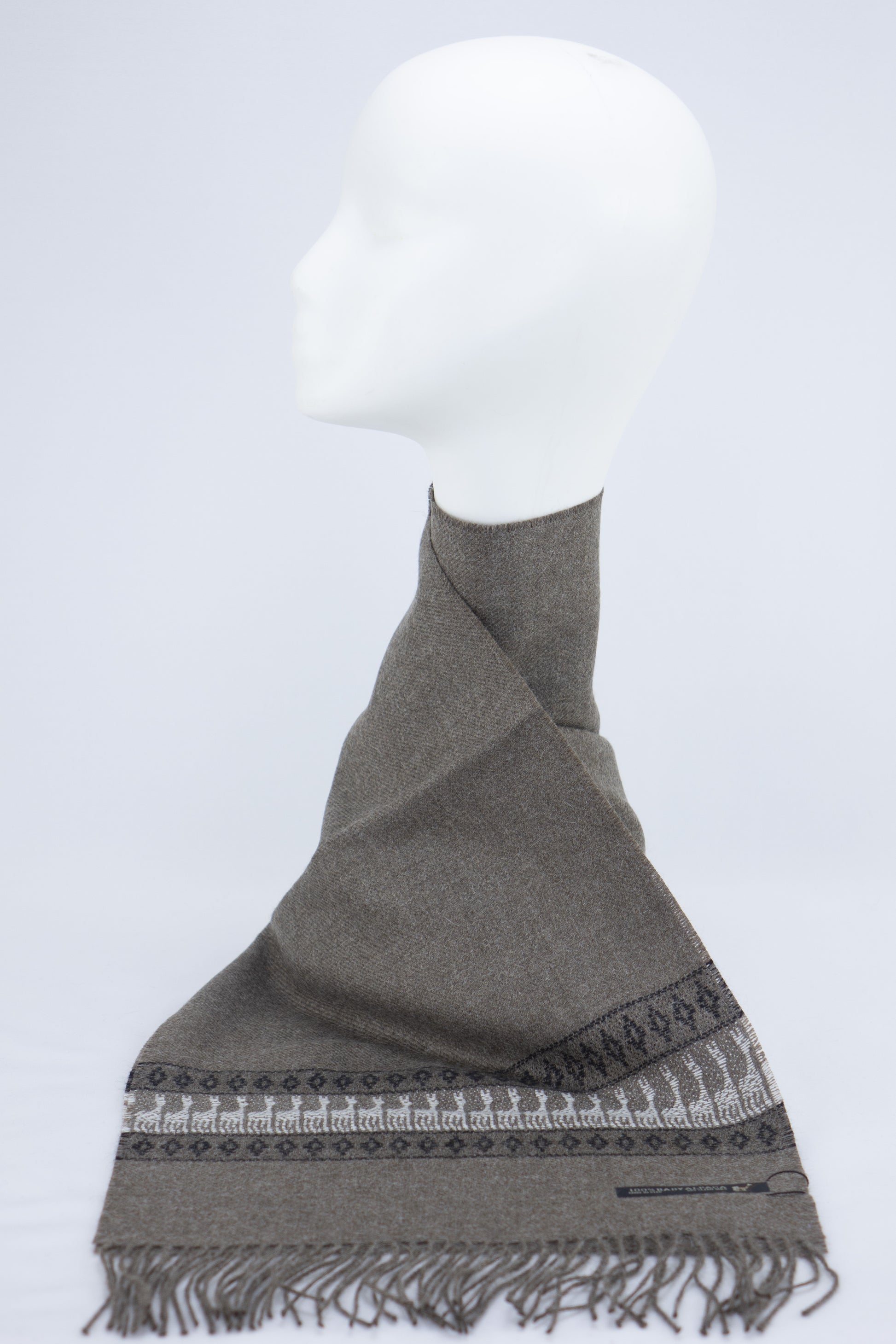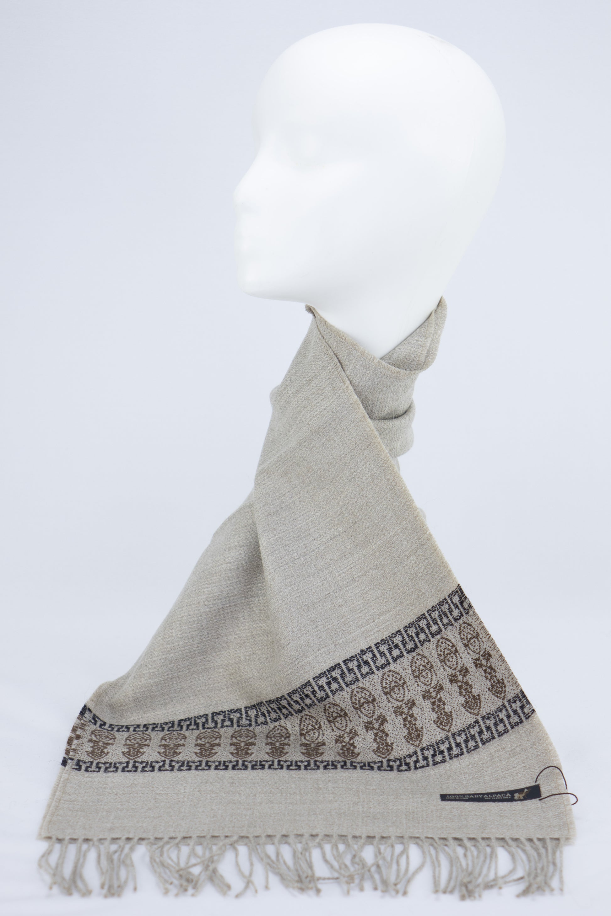Confectionné à partir de 100 % de fibre de bébé alpaga, reconnue pour sa chaleur légère et sa douceur incomparable, ce foulard incarne à la fois le luxe discret et le savoir-faire artisanal péruvien.
